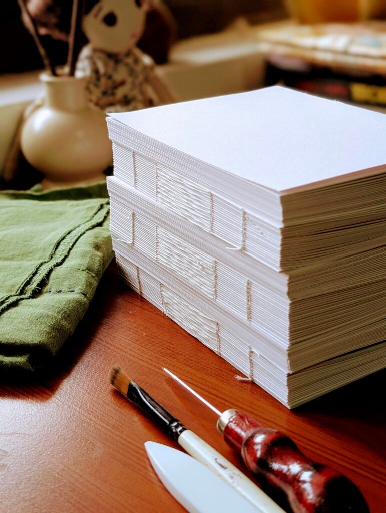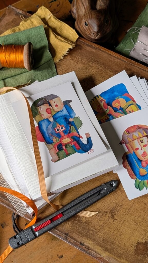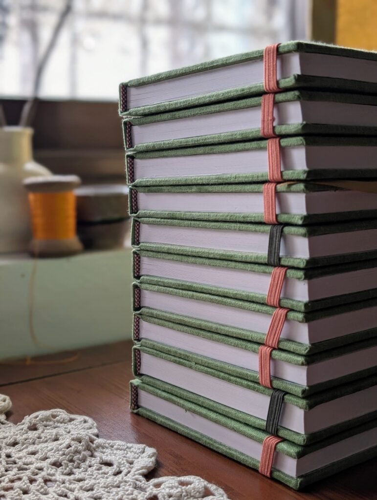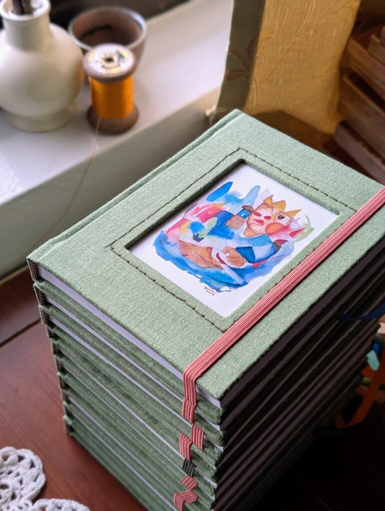 I bind each sketchbook by hand using traditional case binding. It’s slow work, but it keeps me grounded and reminds me why I love making things the thoughtful way.